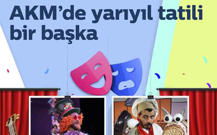 AKM, yarıyıl tatili kapsamında düzenlediği programlarla öğrencilere eşsiz bir sanat deneyimi sunuyor.  Karnelerini alan öğrenciler, birbirinden özel etkinliklerle tatillerine renk katma fırsatı buluyor. Tiyatrodan atölyelere, sinemadan çocuk operasına dopdolu bir program çocukları bekliyor.